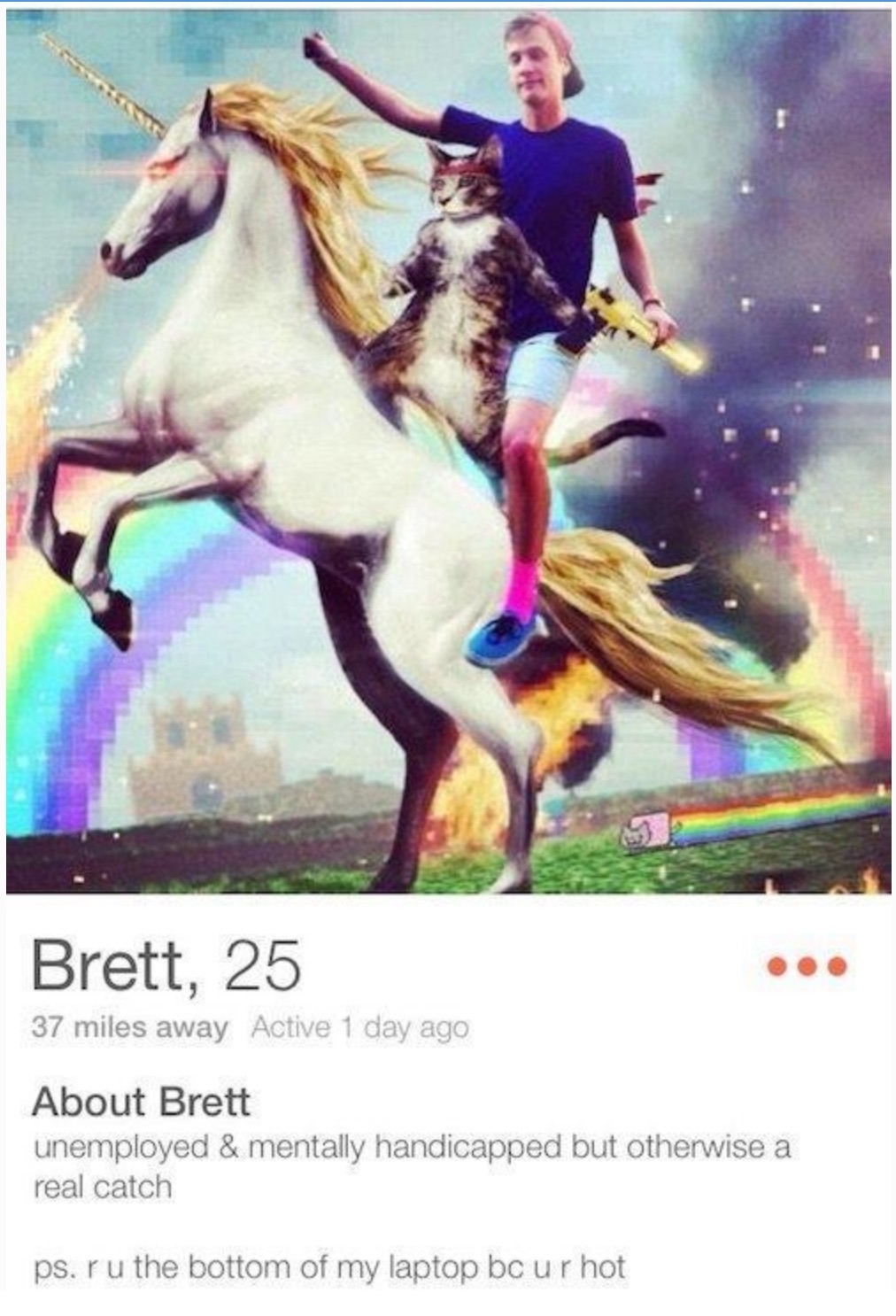 Bio: unemployed & mentally handicapped but otherwise a real catch.