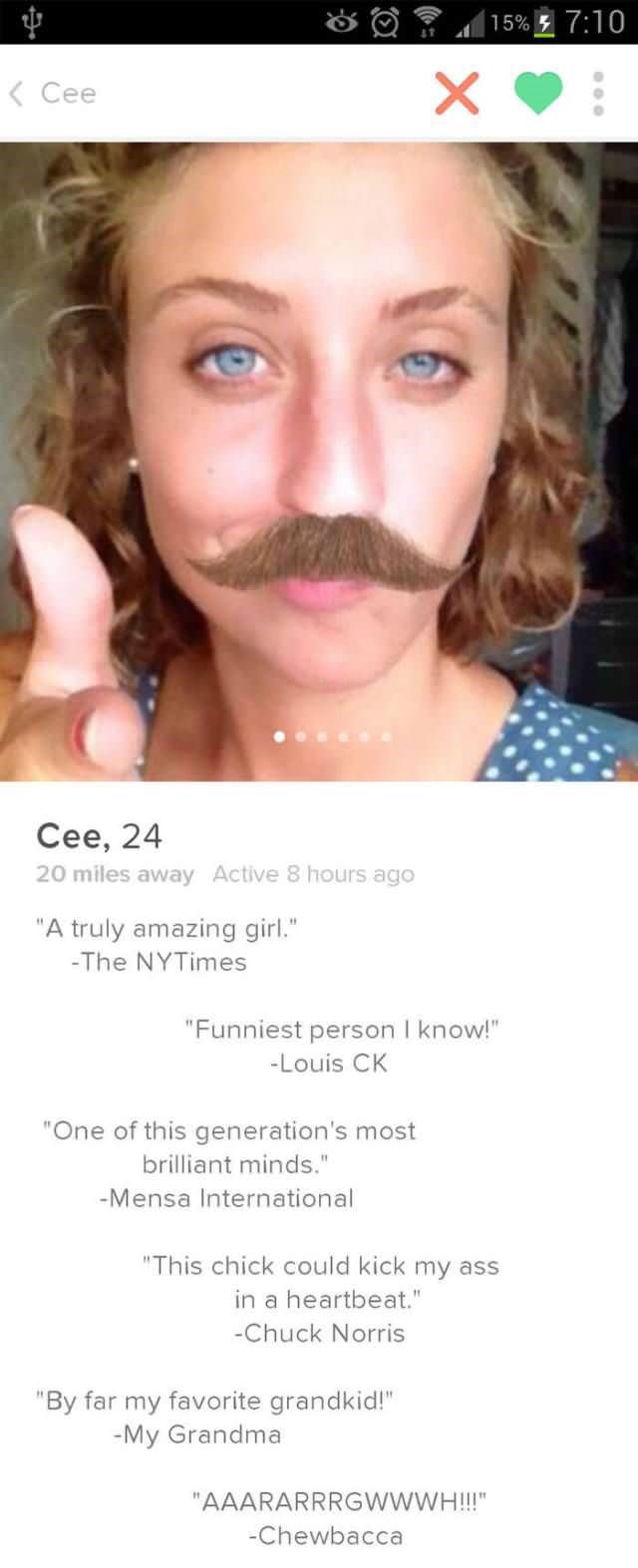 funniest and wierdest available on tinder. Below you an upvote or downvote each