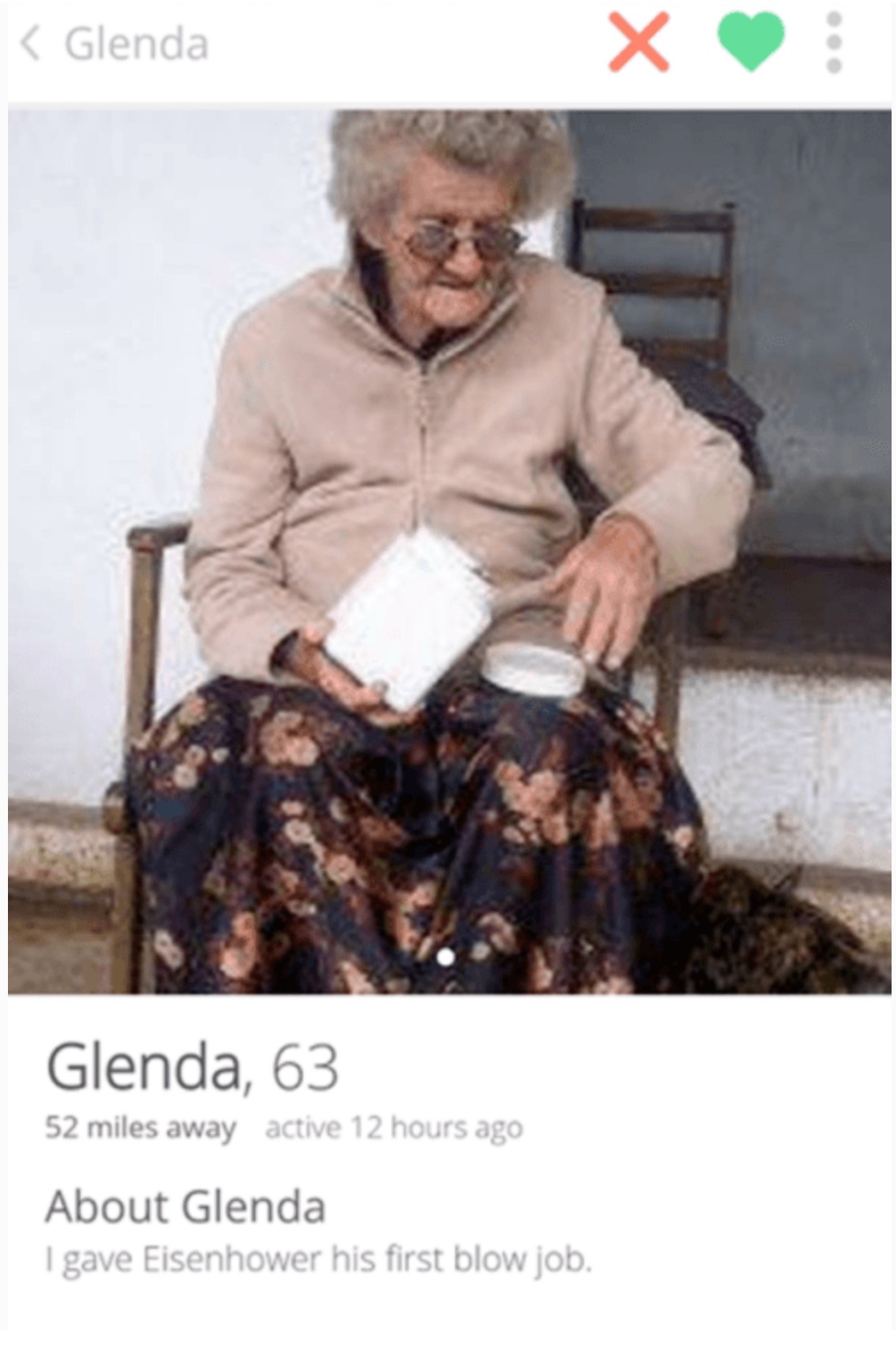 Bio: My wife died a decade ago I like to have friends buy all mine have died my granddaughter has tinder and says its great to meet new people bless my granddaughters heart for seting me up with this.